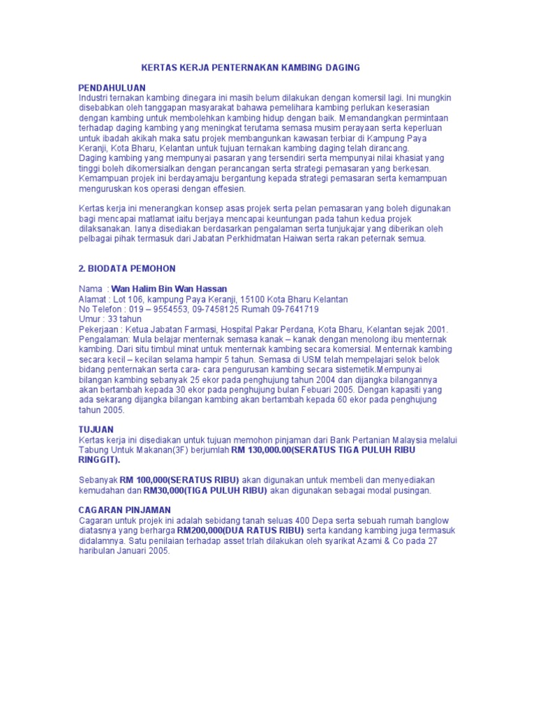 Contoh Kertas Kerja Ternakan Kambing Pdf